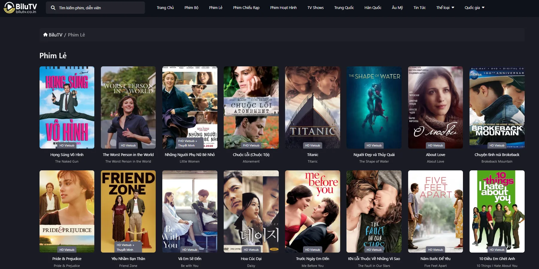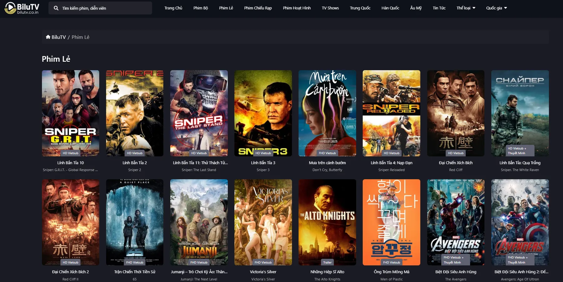 • Lọc trên BiluTV: Thể loại · Năm · Thời lượng · Phụ đề · (tùy) Quốc gia.
